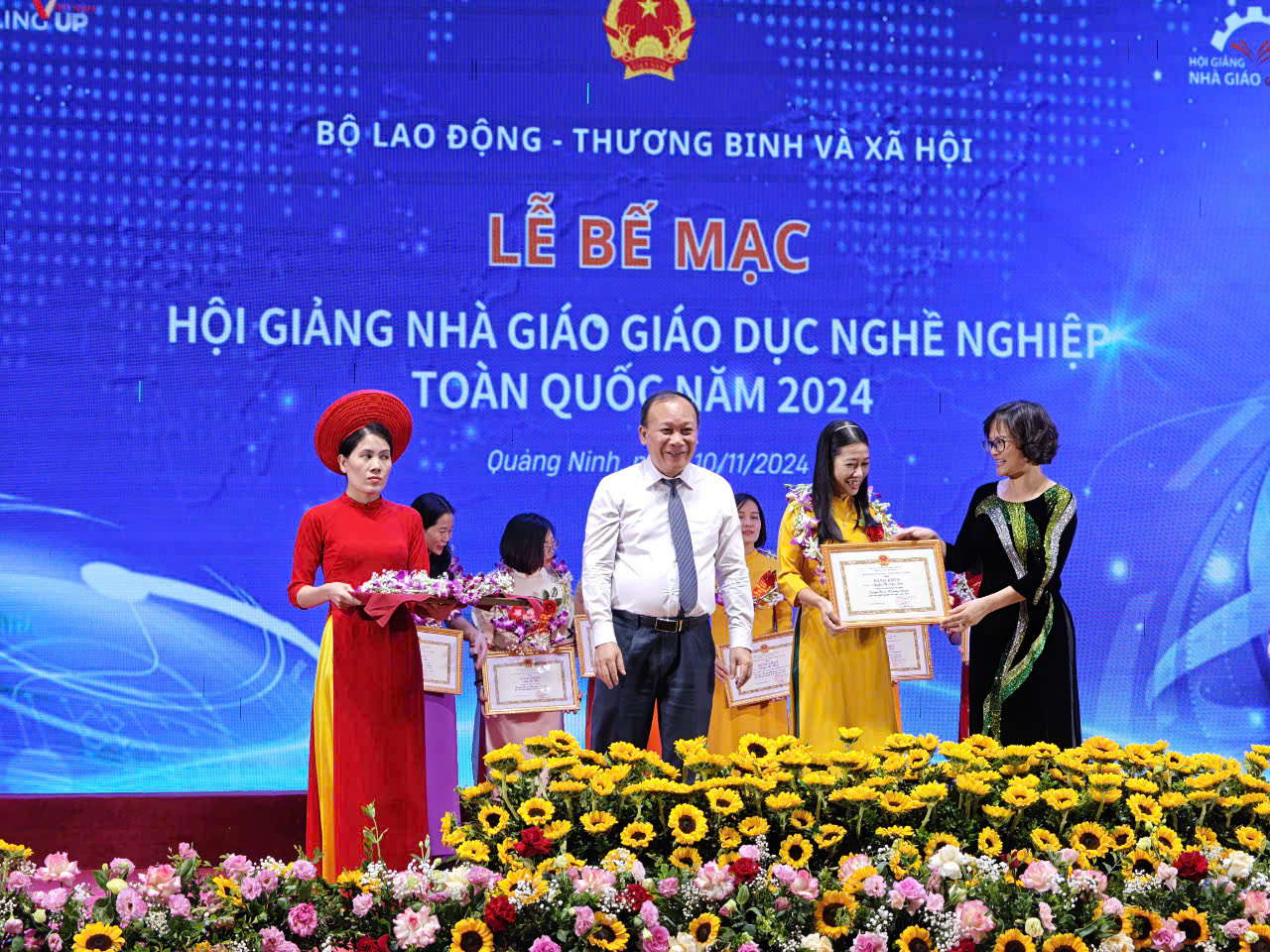 Cô Bùi Thị Hương Phú nhận Bằng khen của Bộ trưởng Bộ Lao động- Thương binh và Xã hội – đạt giải Ba tại Hội giảng Nhà giáo Giáo dục nghề nghiệp toàn quốc năm 2024.