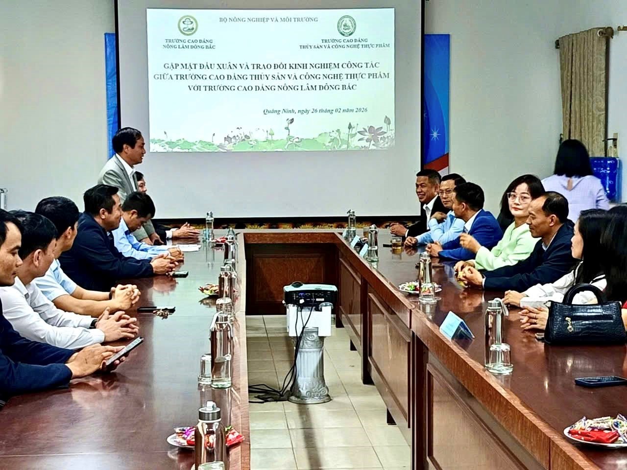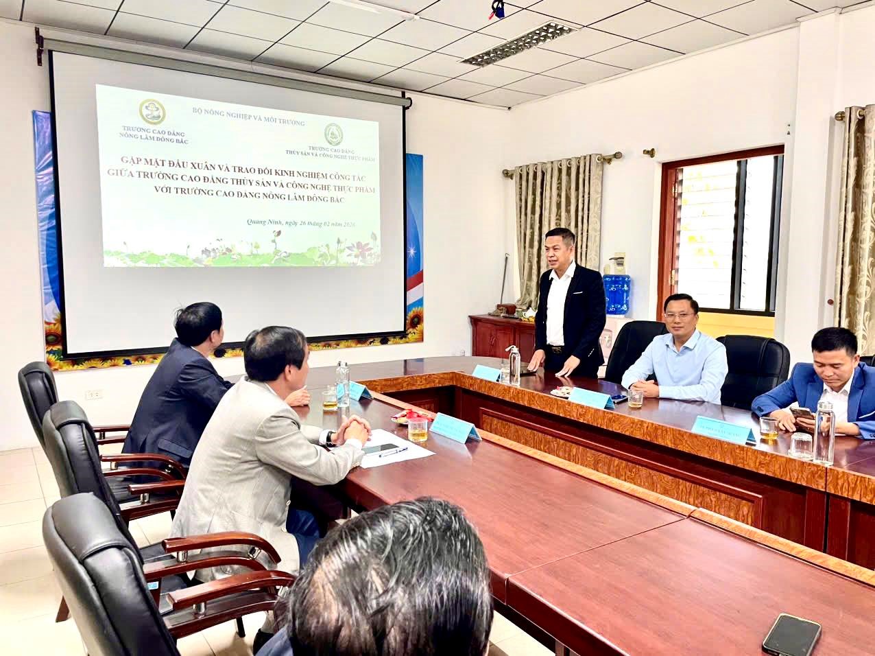 Hòa chung không khí phấn khởi của những ngày đầu xuân năm mới, Trường Cao đẳng Nông Lâm Đông Bắc đã hân hoan đón tiếp và có buổi giao lưu ý nghĩa với Trường Cao đẳng Thủy sản và Công nghệ thực phẩm. Đây là sự kiện quan trọng nhằm tạo diễn đàn trao đổi kinh nghiệm thực tiễn, đồng thời thắt chặt mối quan hệ hợp tác hữu nghị, tin cậy giữa hai Nhà trường.