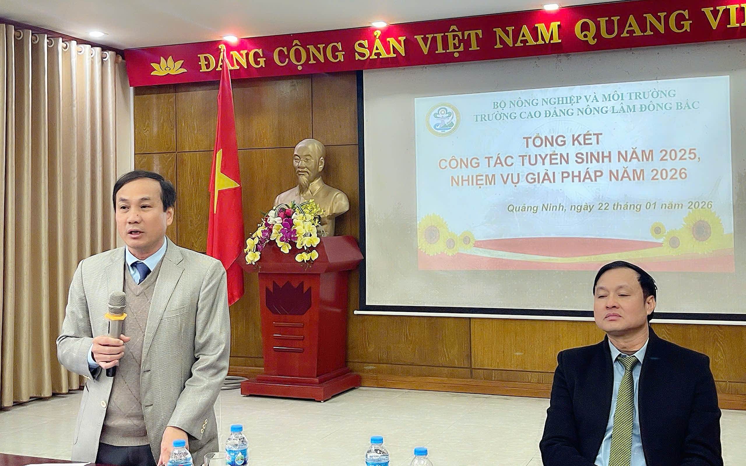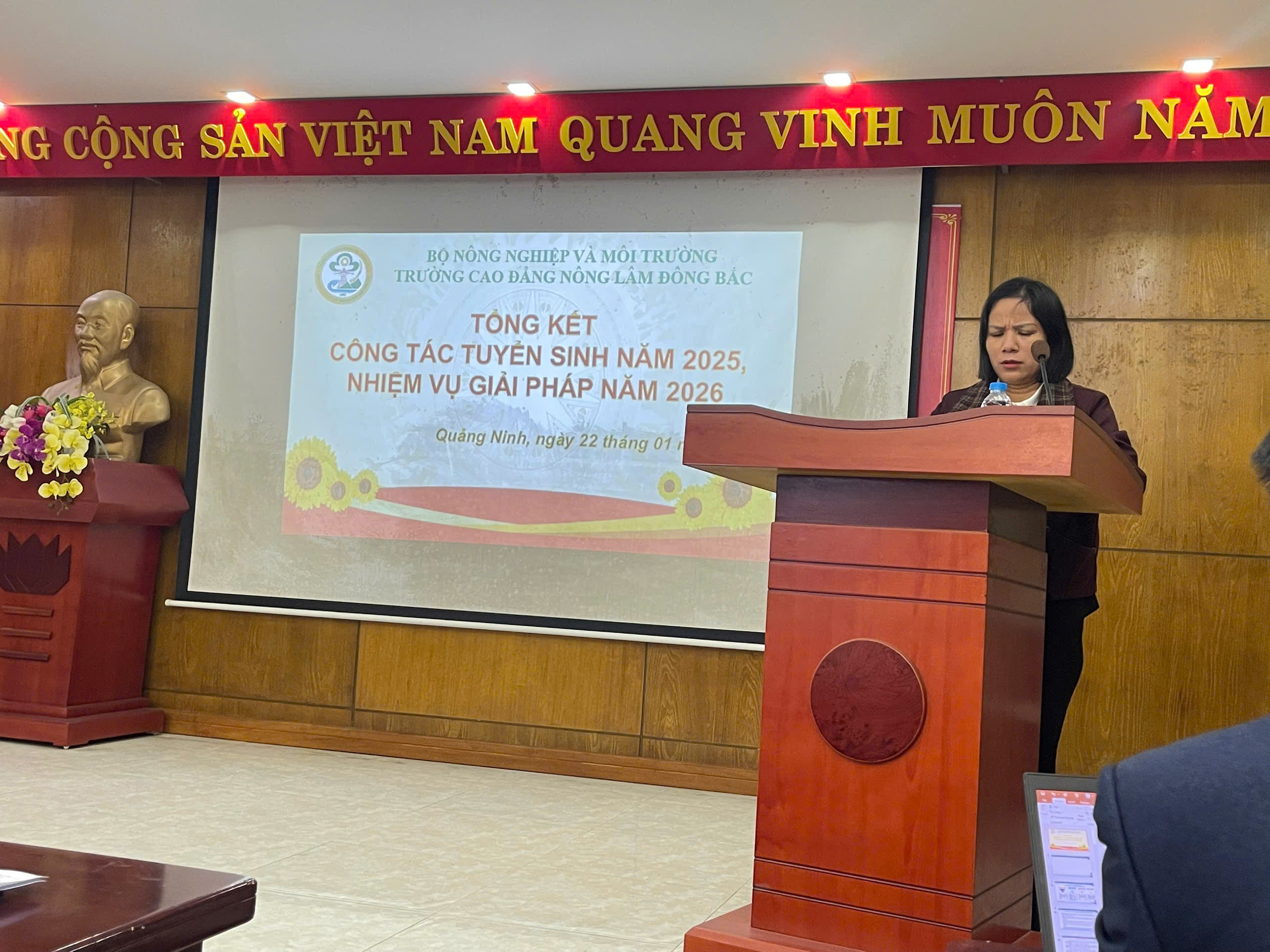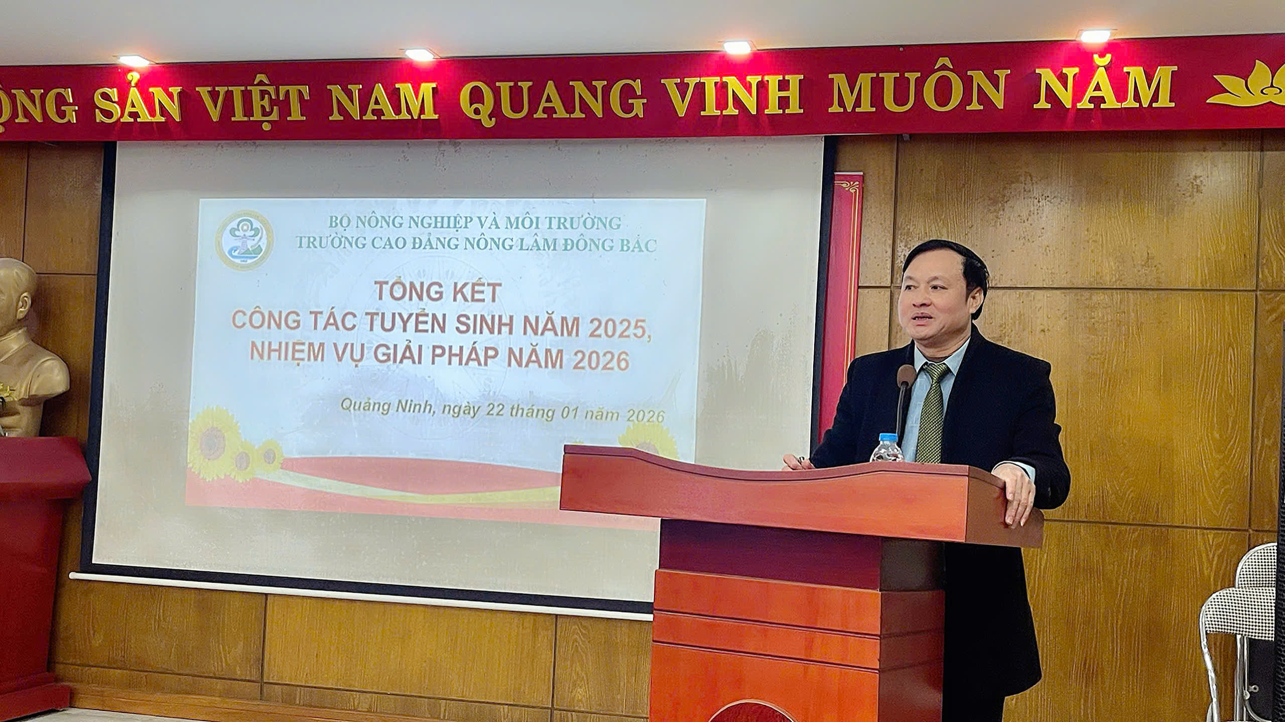 Sáng ngày 22 tháng 01 năm 2026, Trường Cao đẳng Nông Lâm Đông Bắc đã tổ chức Hội nghị tổng kết công tác tuyển sinh năm 2025 và triển khai phương hướng, nhiệm vụ, giải pháp tuyển sinh năm 2026. Hội nghị là dịp quan trọng nhằm đánh giá toàn diện kết quả đạt được, chỉ ra những tồn tại, hạn chế, đồng thời đề ra các giải pháp thiết thực, phù hợp với tình hình thực tế trong giai đoạn tới.