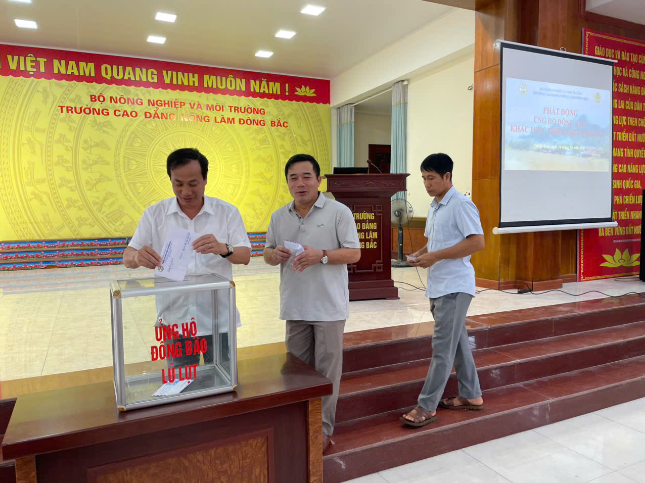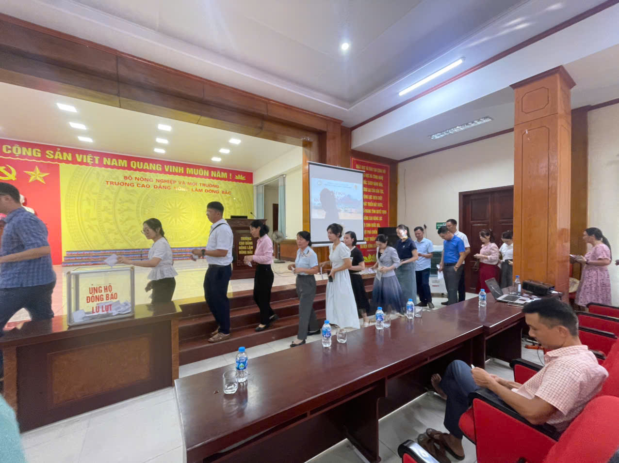 Hưởng ứng lời kêu gọi của Ủy ban Mặt trận Tổ quốc phường Đông Mai, tỉnh Quảng Ninh về việc ủng hộ đồng bào khắc phục hậu quả do bão lũ gây ra, sáng ngày 16/10/2025, Trường Cao đẳng Nông Lâm Đông Bắc đã tổ chức thành công chương trình quyên góp mang tên “Chung tay vì đồng bào vùng lũ – Lan tỏa yêu thương”.